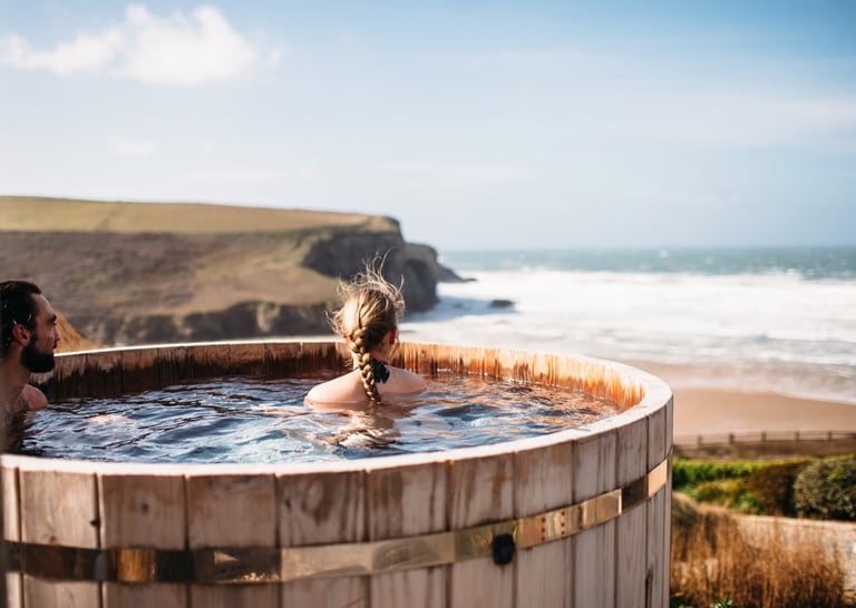 couple in a hot tub at the manor house in wiltshire