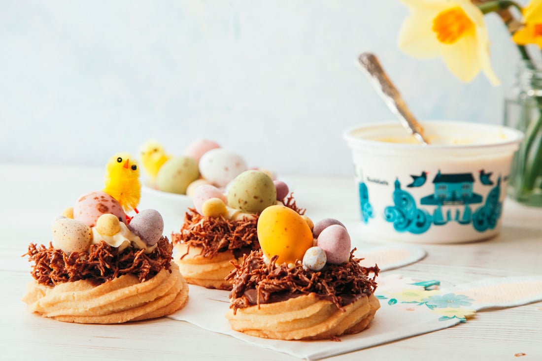 The foodies at Rodda’s in Cornwall have teamed up with chef Juliet Sear to create these fun Easter nest biscuits