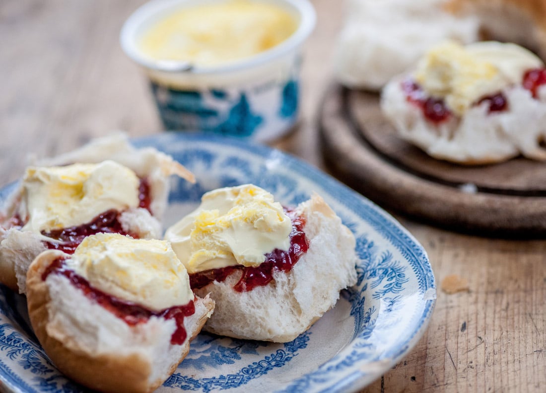 A close cousin of the classic scone, the Cornish split is a sweet bread bun. Serve it with homemade jam and luscious Cornish clotted cream, or with golden syrup and clotted cream to make a Thunder and Lightning