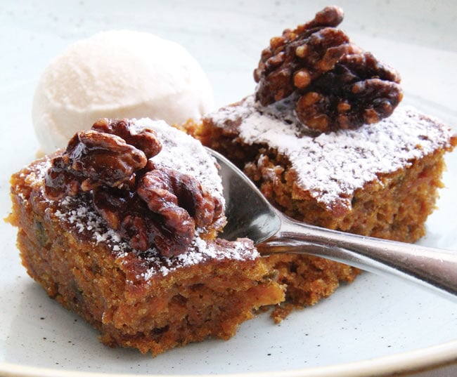 Serve this spicy carrot cake straight from the oven with a generous dollop of velvety thick clotted cream