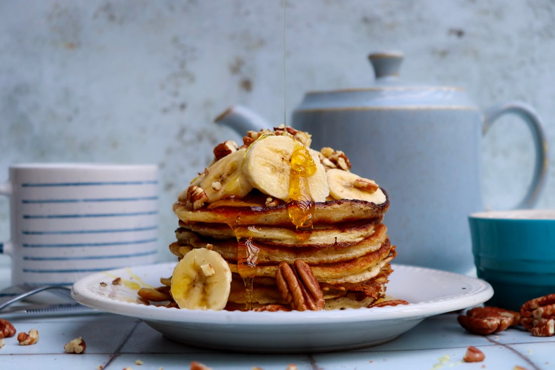 7. Keep the ultimate pancakes warm in a low oven until you’re ready to serve them with toppings such as sliced banana, pecans and drizzled maple syrup.