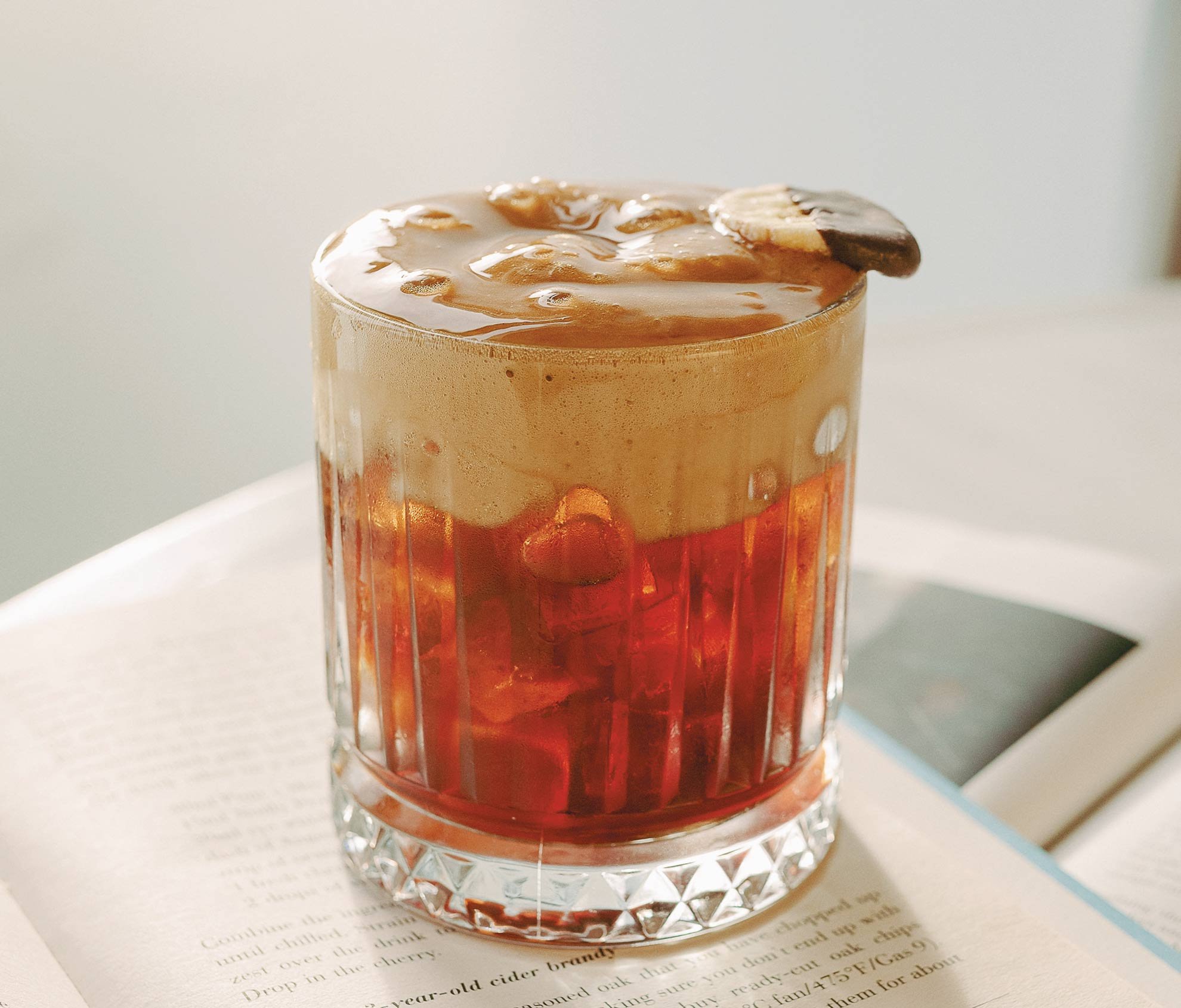 2. Pour the Discarded Banana Peel Rum, Coffee Rum Liqueur and dark cacao liqueur into a tumbler or rocks glass.
