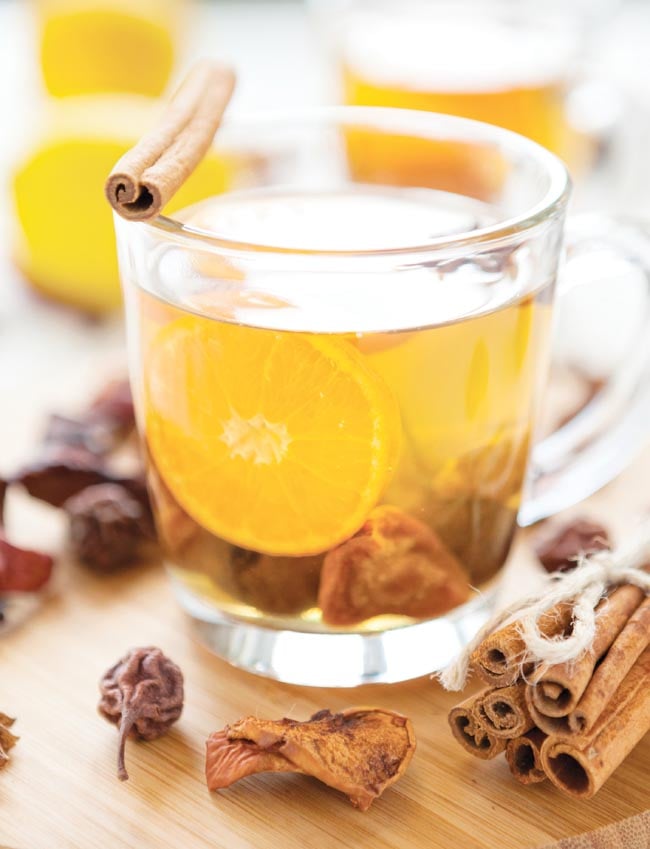 You can make an alcohol-free version of this spiced hot cider cup recipe by using cloudy apple juice as the base instead of cider