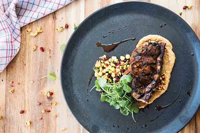 Dan Archer, head chef at The Royal Seven Stars Hotel in Totnes, shares his recipe for harissa marinated barnsley chop with sweetcorn and chilli salsa, and aubergine puree