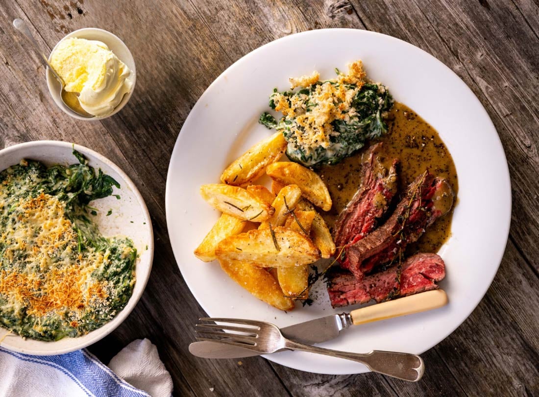 Chef and food writer Gill Meller shares his ultimate steak and chips recipe, which he serves with a Rodda’s Cornish clotted cream peppercorn sauce