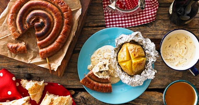 Get outdoors and cook up a storm with this irresistible recipe for campfire cider sausages from Yeo Valley