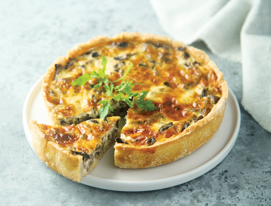 8. Pour the egg mixture into the cases, ensuring even distribution of herbs. Bake for 20-25 minutes until set and the pastry is golden brown (allow an extra 5-10 minutes if making 1 large tart).