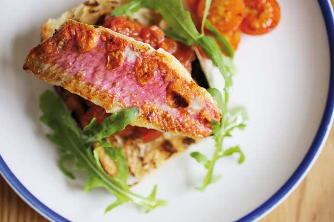 8. Serve the chutney and red mullet on toast, making sure to drizzle over all of the oil released by the fish when grilling.