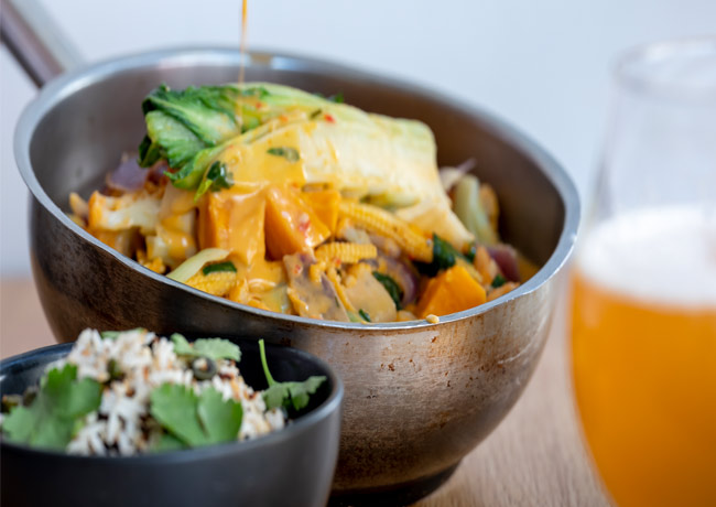Ken Symons, chef patron at Oliver’s in Falmouth, shares his recipe for sweet potato, cauliflower and coconut curry