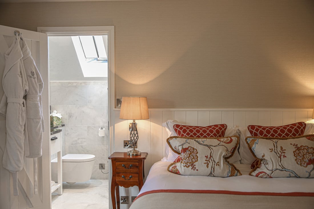 The new Coach House sleeps six guests in two double en-suite rooms and a twin room with bathtub. It’s been thoughtfully designed with families and groups in mind: there’s an open-plan kitchen and dining area to enjoy home-cooked or room-service meals together, and a cosy leather sofa with soft blankets for snuggling up beside the wood-burning fire. The private garden offers a wonderful space for outdoor dining, and for children and dogs to play in this delightful countryside ‘home from home’.